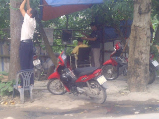 The local male hairstylist works under a tree across the street. I'm sure he does a great job and all, but frankly the thought of possibly "going under the blade" for every passerby to see didn't excite me. Neither did rumor that he has a stick he pokes in each ear as some kind of massage! A more pressing concern was the fear of electrocution should he happen to use some electrical device strung by extension cord over a branch! Needless to say, "Tree Man", as he's fondly called by my expat friends, was out.